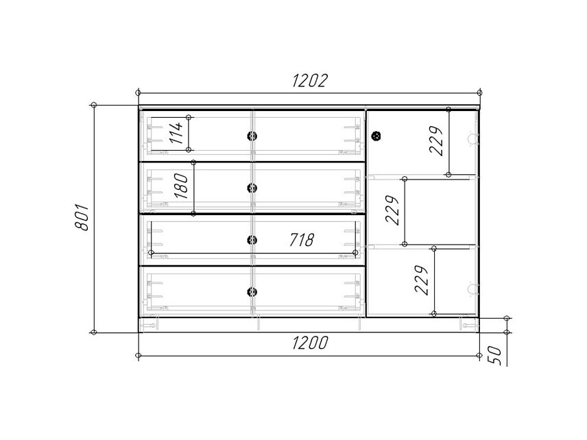 Комплектация: шариковые направляющие 100% выдвижения без доводчика, петли без доводчиков