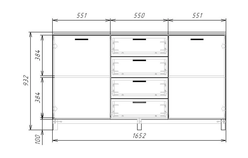 Комплектация: направляющие шариковые 100% выдвижения, фасады с фрезеровкой, петли без доводчика, ножки массив дерева