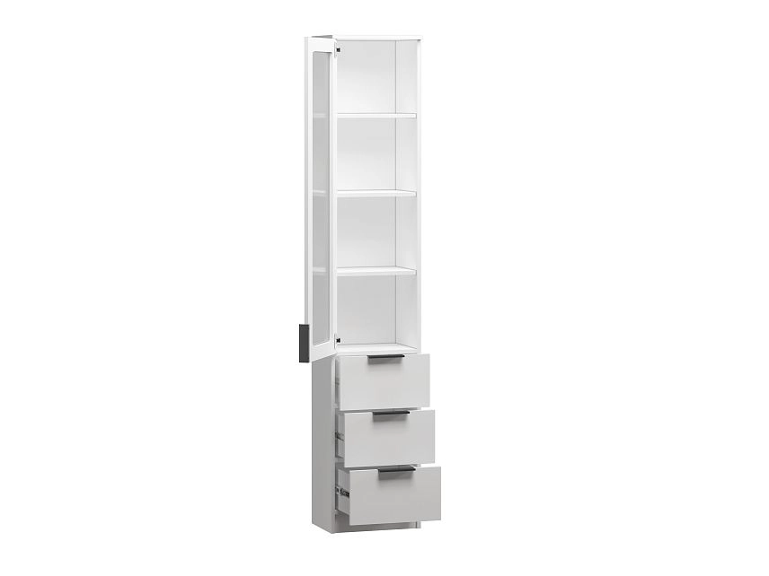 Комплектация: петли без доводчиков, шариковые направляющие 100% выдвижения, ручка мебельная торцевая СА-1 64ММ черный матовый, арт.39803, стекло простое