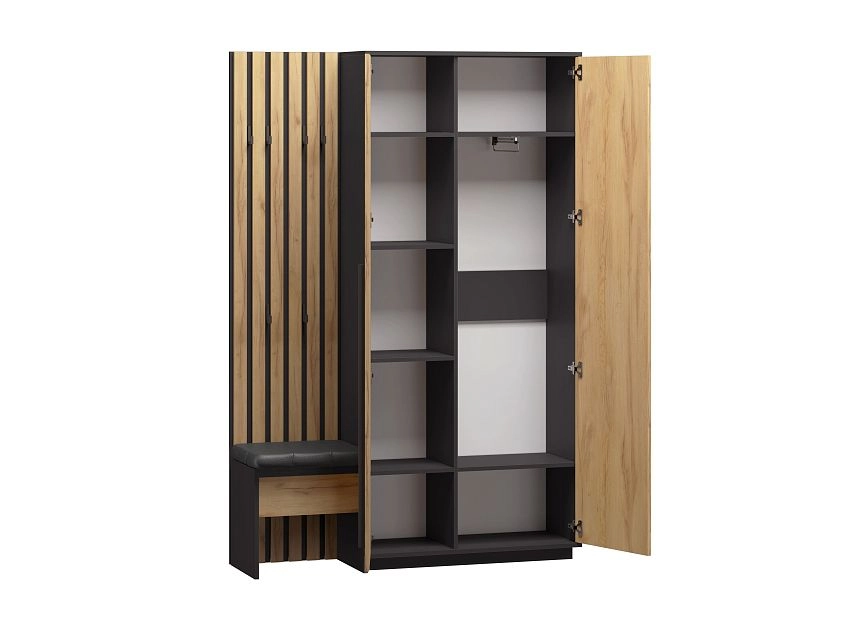 ЛДСП 16мм. Кромка в цвет корпуса. Штанга выдвижная 300мм. Мягкий элемент сидушки. Крючки арт.07215, ручки на шкаф арт.39215.