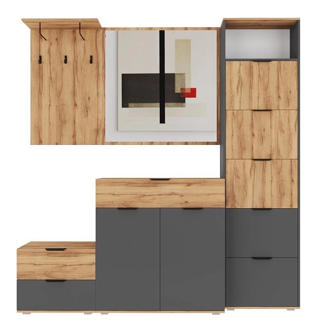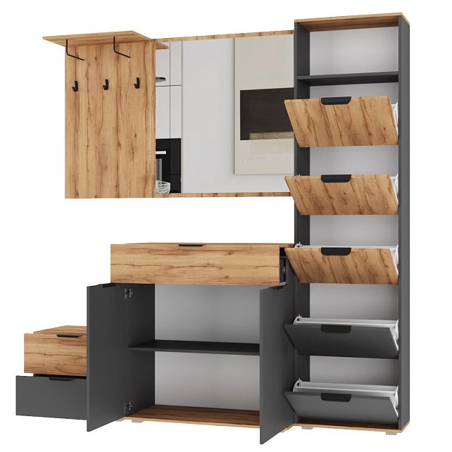 Комплектация: ручка мебельная торцевая 128 мм, черный RT110BL.1/128/150 BOYARD, арт.719962-2; крючок мебельный однорожковый ВМ-2 металлический черный АЛДИ, арт.07219; опора мебельная регулируемая прямоугольная №6 54*54*20 мм металлик АЛИДИ, арт.10196; шариковые направляющие, вешалка-кронштейн 192*75ММ черная АЛДИ, арт.07192
