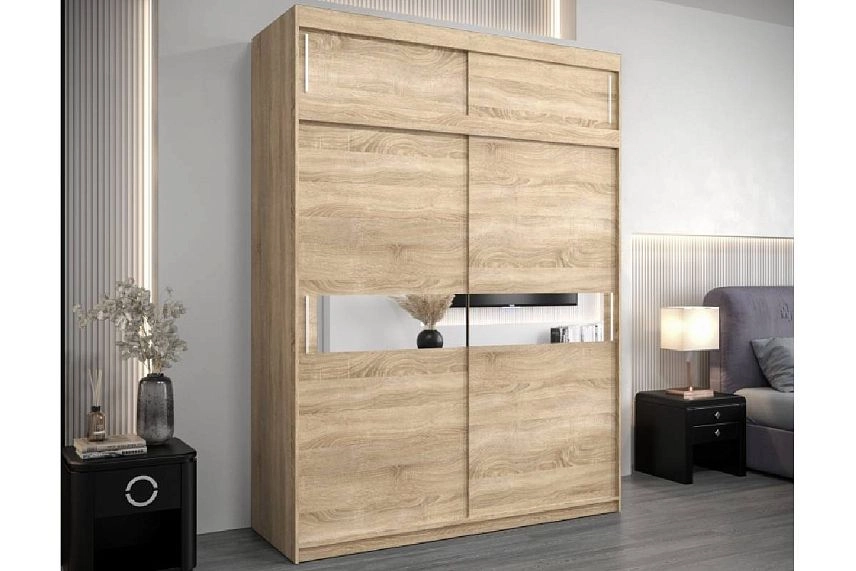 Шкаф-купе Бенито-3А в цвете дуб сонома с зеркальными вставками