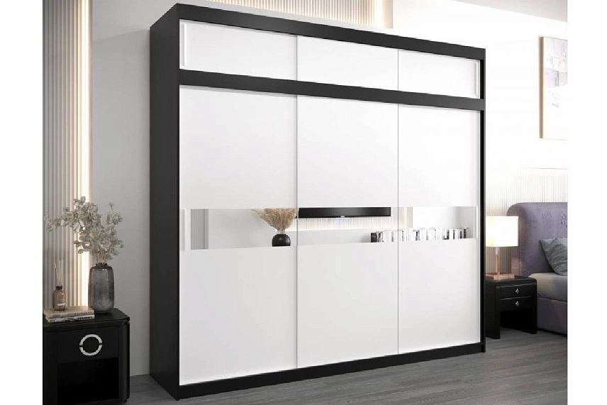 Шкаф-купе Бенито-3А в цвете черный 0190 pe с зеркальными вставками
