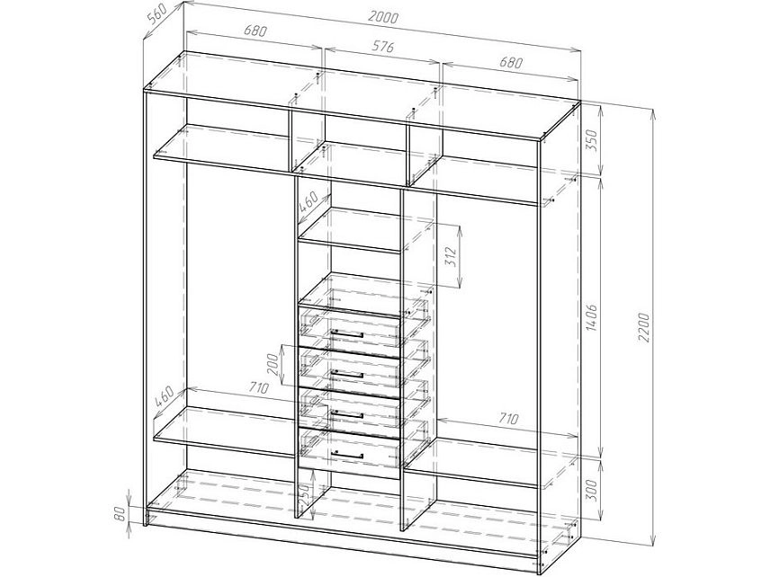 3. Если высота шкафа превышает 2200 мм, рекомендуется добавить дополнительную полку в секцию с полками.