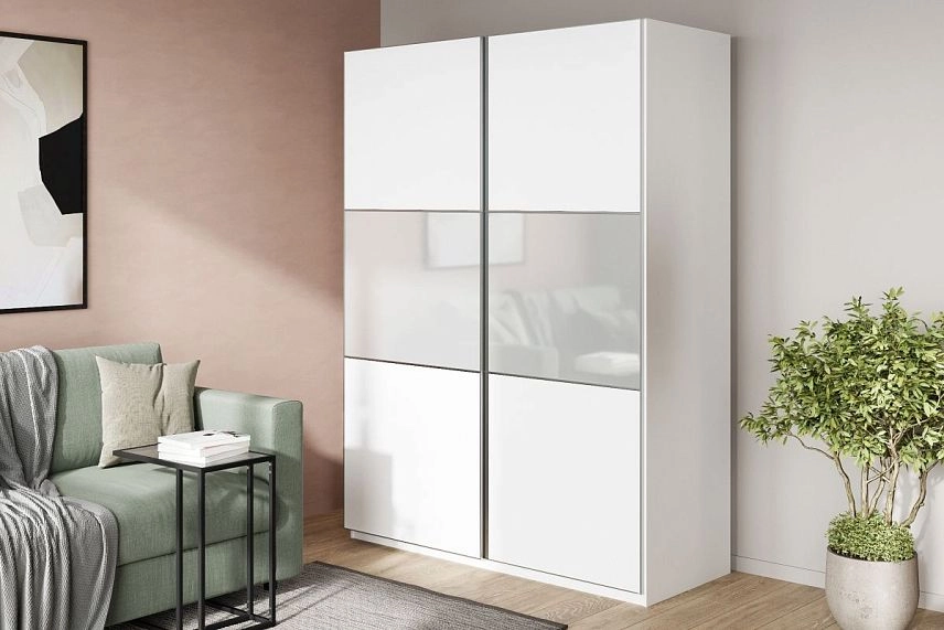 Шкаф-купе Реал-6 в белом цвете с зеркальными вставками