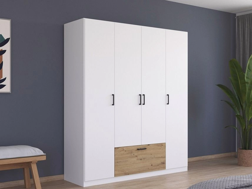 - Шкаф распашной Бари-1 Белый / Дуб Бунратти