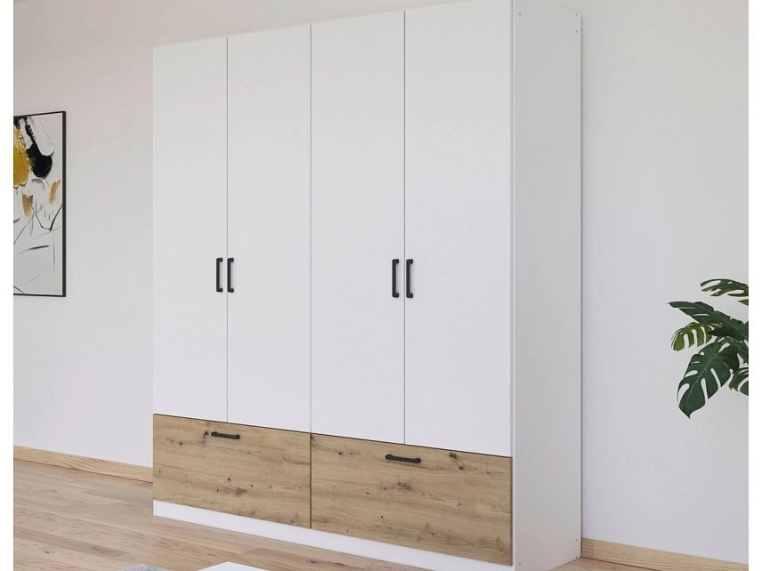 - Шкаф распашной Бари-3 Белый / Дуб Бунратти