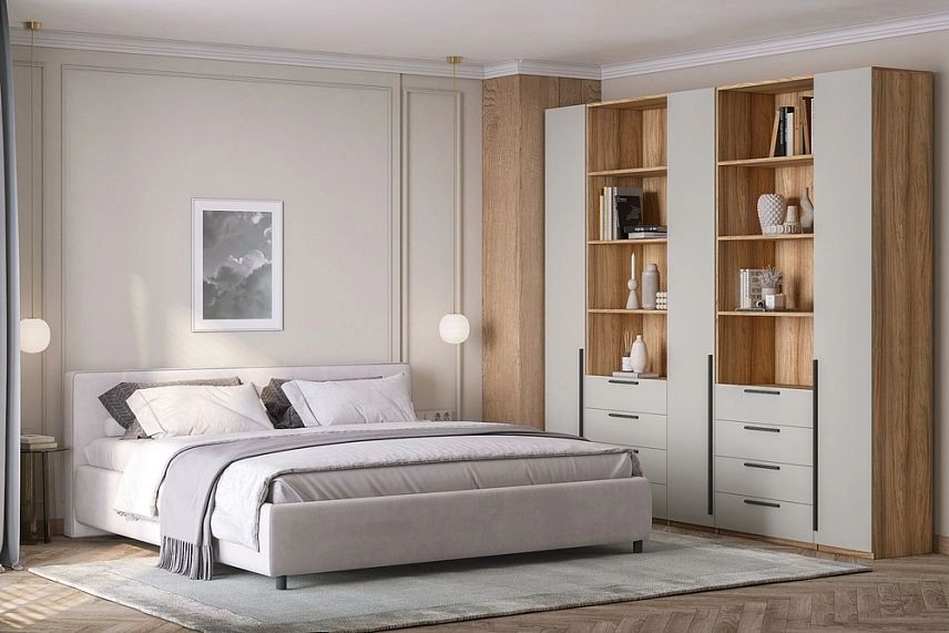 - Шкаф распашной Хейсон-1 Кашемир Блэквуд Ячменный