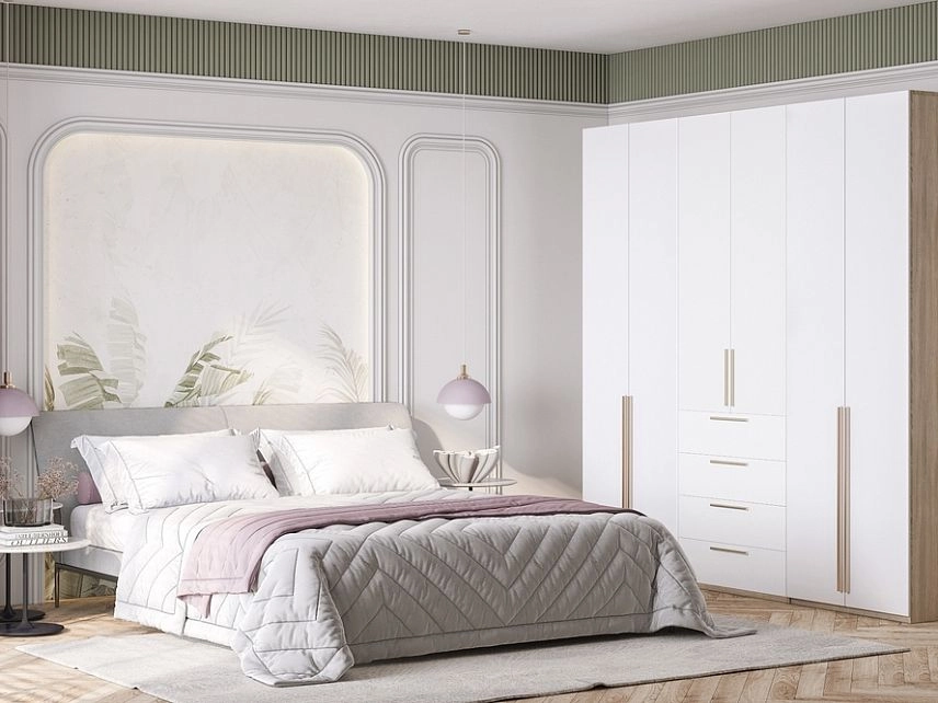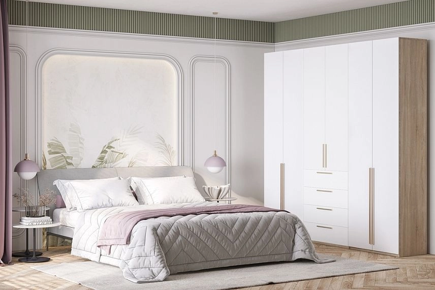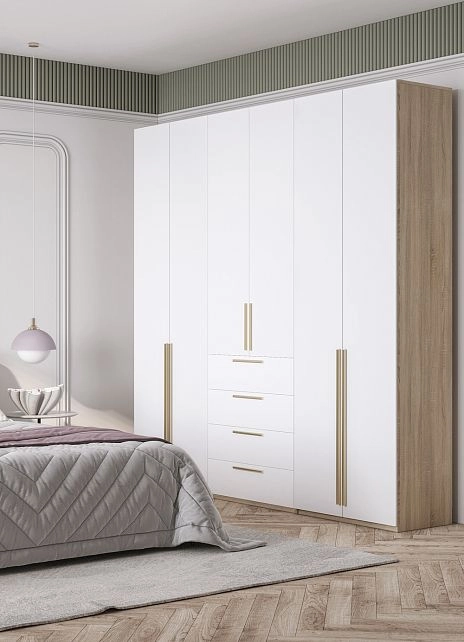 - Шкаф распашной Хейсон-8 Белый Дуб Сонома