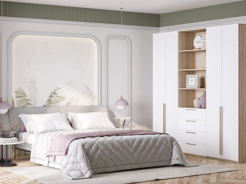 - Шкаф распашной Хейсон-9 Белый Дуб Сонома