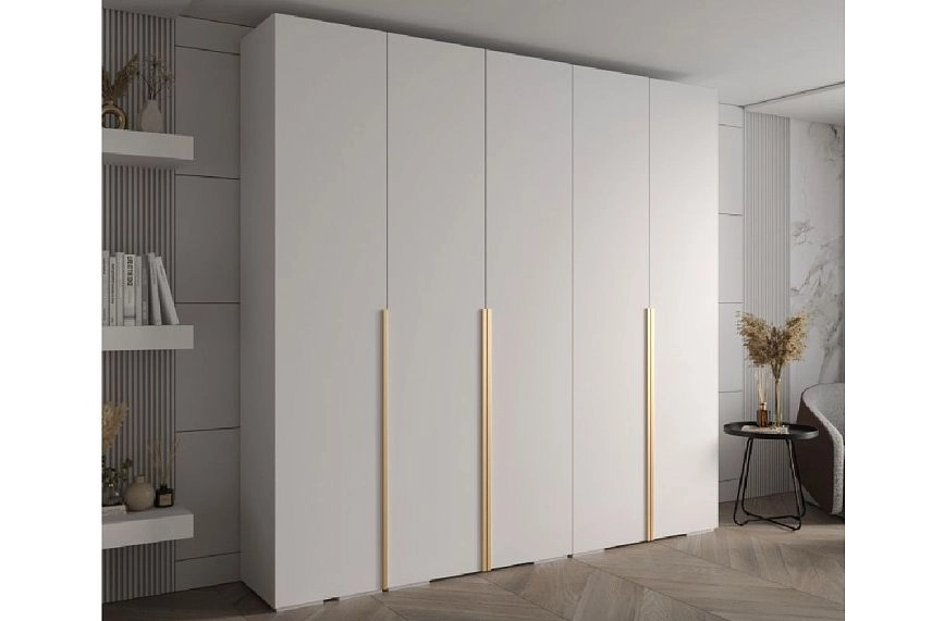 Комплектация: 2 секции Б (5 полок) / 3 секции П (полка под шляпы + полка + выдвижной кронштейн + полка под обувь), 39924 ручка торцевая СА-6/6, 864мм/997мм золотой металлик, петли без доводчиков