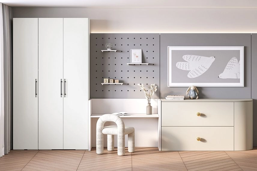 При глубине шкафа менее 500 мм используется выдвижной кронштейн, если глубина шкафа составляет 500 мм и более используется штанга для одежды. Выбор вариантов наполнения на фото за дополнительную плату.