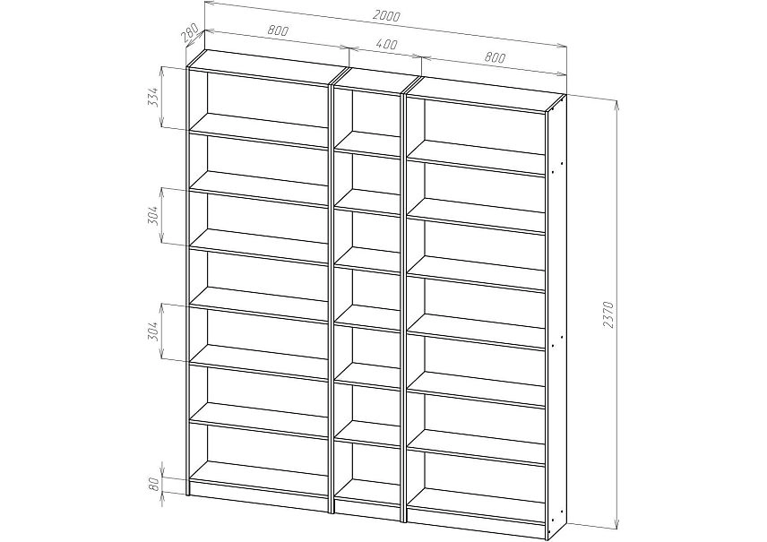 | Книжные шкафы, стеллажи от 600 мм до 1000 мм | 350 | 1000 | 600 |