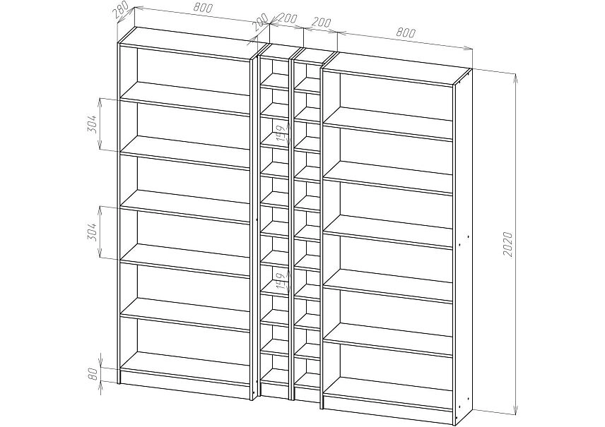 | Книжные шкафы, стеллажи от 600 мм до 1000 мм | 350 | 1000 | 600 |