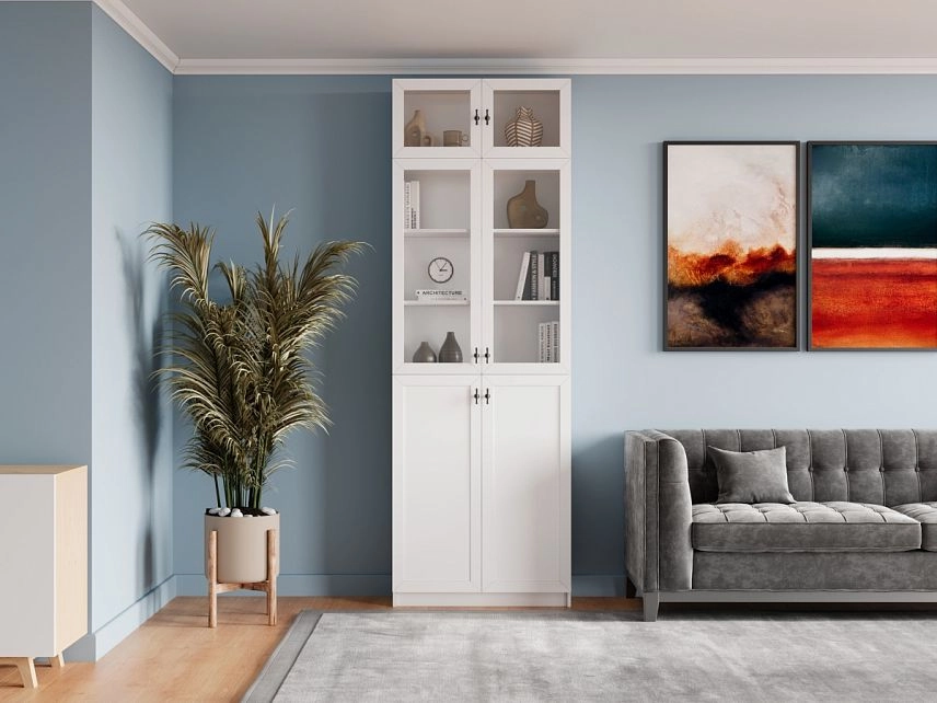 Комплектация: фасады - рамка МДФ квадро + вставка ЛДСП/стекло простое, задняя стенка ЛДВП белого цвета, ручка ZA2391 кнопка черная MBK, арт. № 39512, петли без доводчика