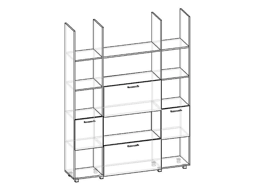 Комплектация: задняя стенка - ХДФ (ламинированная) (только в ячейке с фасадом), ручка-рейлинг 128 мм - хром матовый, регулируемая опора - хром матовый, кронштейн барный с магнитом, петля секретерная - металлическая
