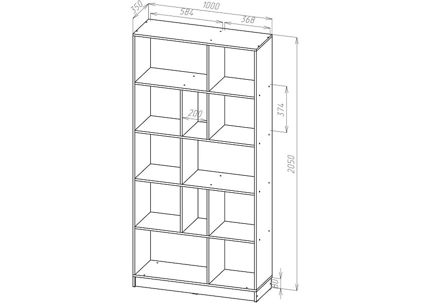 | Книжные шкафы, стеллажи от 600 мм до 1000 мм | 350 | 1000 | 600 |