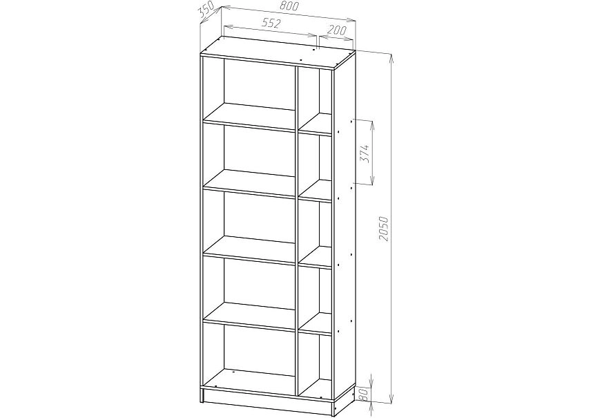 | Книжные шкафы, стеллажи от 600 мм до 1000 мм | 350 | 1000 | 600 |