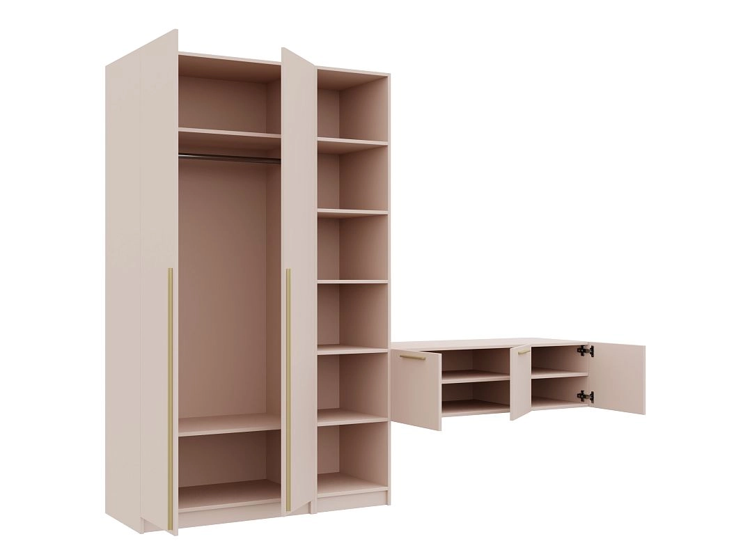 Петли без доводчиков. Направляющие шариковые 100% выдвижения без доводчика. Штанга металл Ф25мм. Ручки: Ручка CPA1 мебельная накладная м.ц.160 мм L 188мм,алюминий золото RCPА1A.188GADI, Ручка CPA1 мебельная накладная м.ц. мм L 1000мм,алюминий золото RCPА1A.1000GADI