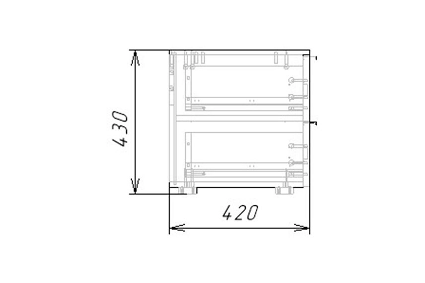 Комплектация: шариковые направляющие 100% выдвижения, опора регулируемая Н20мм, ручка торцевая арт.19283, петли без доводчика